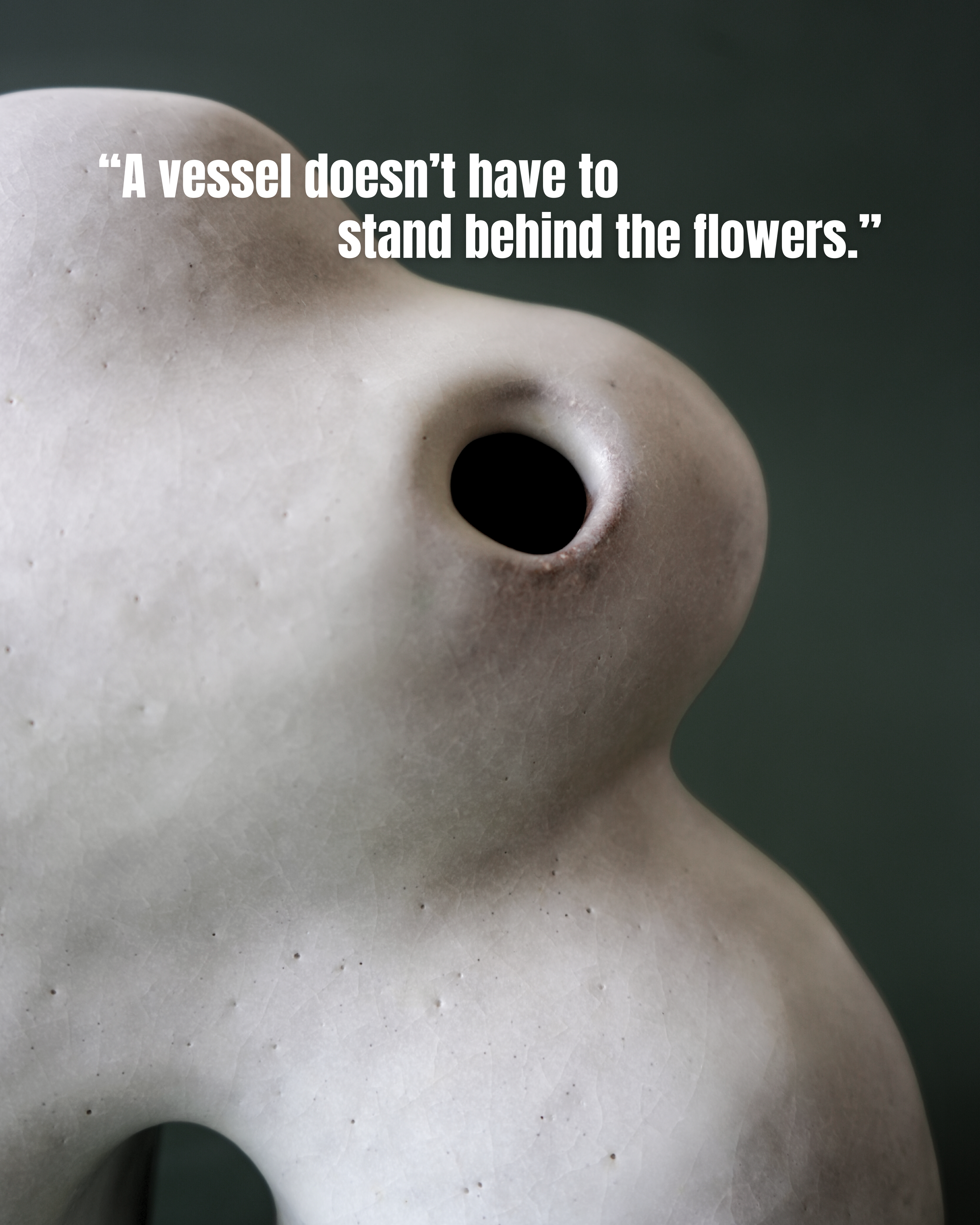 Before vessels, Tanchi was known for her large-scale sculptures. The transition began when a florist approached her for collaboration